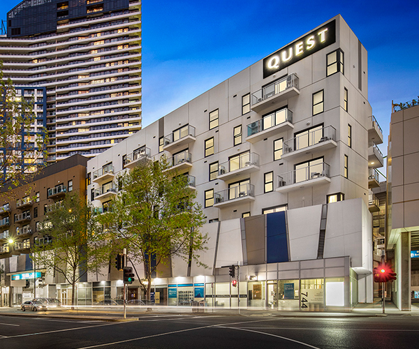 Quest Docklands serviced apartment style hotel rooms offer guests a relaxed and comfortable Docklands Melbourne accommodation experience perfect for short or long stays.Quest Docklands is located next door to Etihad Stadium, minutes from Southern Cross Station, Melbourne's Harbour Town Precinct, Crown Casino, Melbourne Convention Centre and the heart of Melbourne's CBD.