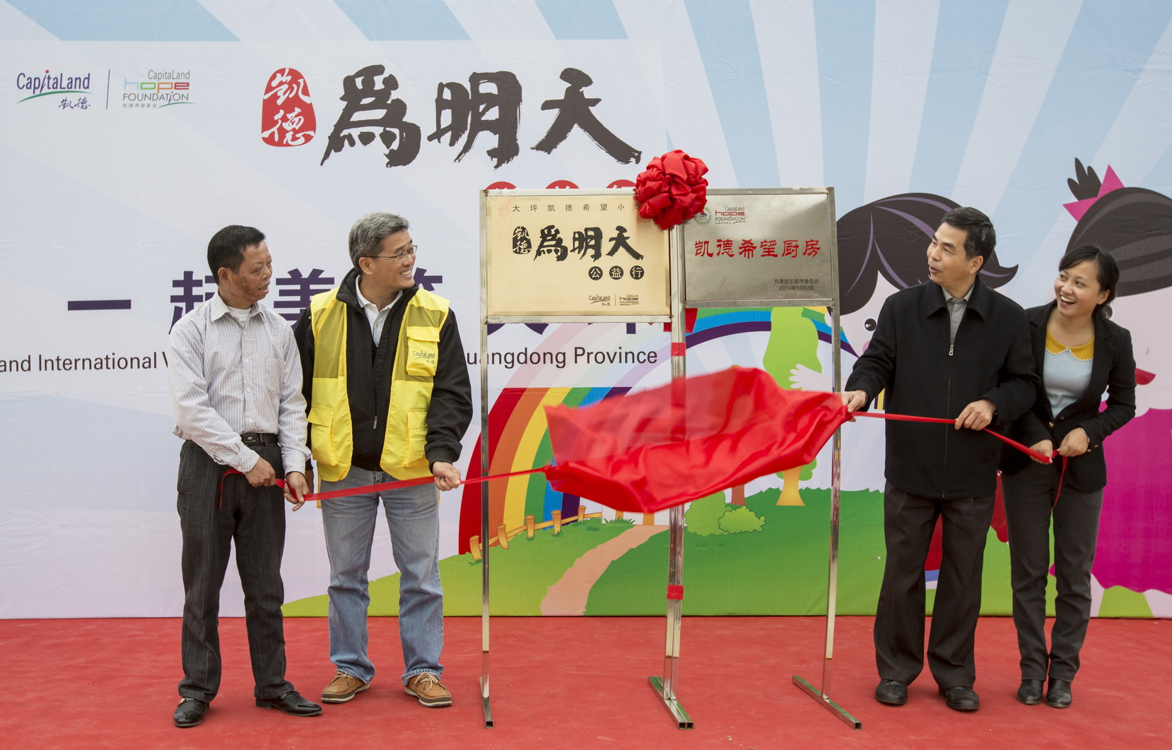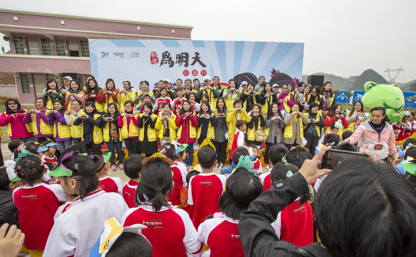 11月29日至12月3日,由亚洲领先的跨国房地产企业凯德集团、凯德中国希望基金发起的2014“凯德•为明天公益行一起美筑大坪“大型公益活动,在广东省韶关市大坪凯德希望小学顺利完成。来自社会各行业、媒体及50余名凯德集团中国及海外员工组成的志愿团队,亲赴广东韶关市乐昌市梅花镇,为山区的孩子们带来一次爱心满满的探访活动。