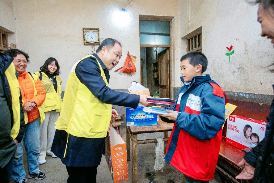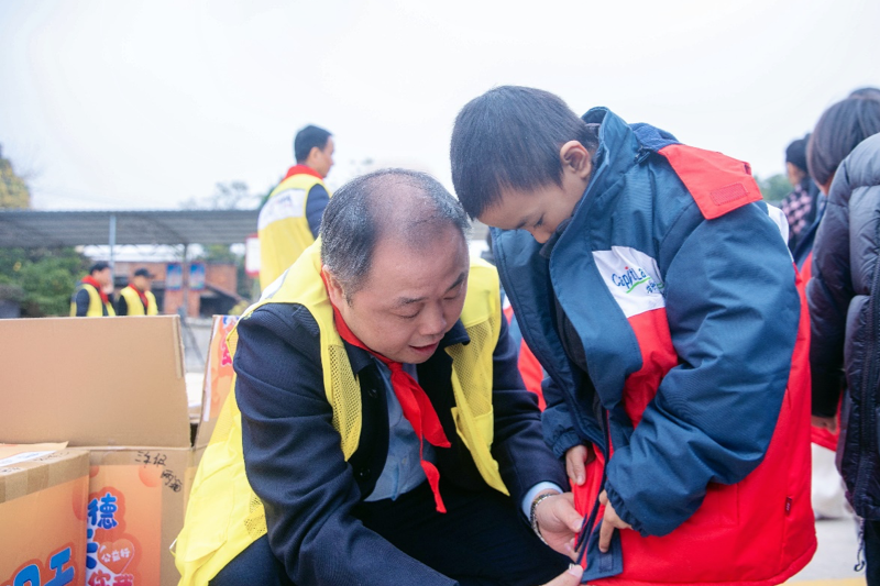 12月16日一早,在凯德希望基金的支持下,凯德广场·雨花亭联合场内爱心商户、合作伙伴代表,组成32人的志愿者团队,带着爱心物资和满满爱心,驱车前往300多公里外的永州市新田县苦志育才学校,开展了一场以“2021凯德为明天,爱善行温暖你我”为主题的公益行探访活动。在捐赠仪式现场,志愿者们给学校1-6年级的学生亲手派发了温暖棉衣、学习体育等用品,祝愿孩子们能在寒冬里健康成长,认真读书。