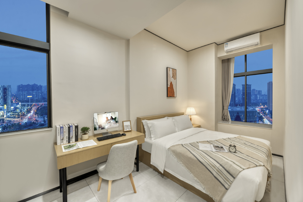 公寓空间规划合理,精选的优质家具和细致的管家服务,如家一般让您的生活自在无忧。客房中配备的无线上网设备、写字桌以及独立的卫浴空间都将为您带来舒适又私密的入住体验。