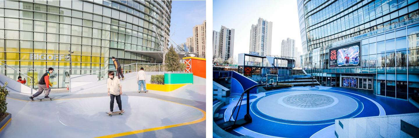 疫情引发了更广泛公众对于运动的关注,健身文化作为日常生活方式不可或缺的一部分,在满足追求健康的同时兼顾了社交的需求。2021年,B2的篮球运动空间“斗兽场”已经举办过路人王南城首站篮球争霸赛、路人王女神赛、“街球复燃”全国花式篮球邀请赛等十余场运动类KOL集聚的篮球赛事,成为南城运动文化中心。随着凯德MALL·大兴以全新面貌亮相,位于南广场约200平方米的火星滑板公园,和北广场约400平方米的赛博朋克风格的失重球场作为“两个磁场”,联袂引领南城运动风向。