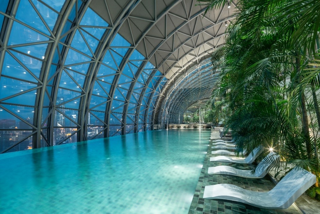 重庆来福士俱乐部包括山城花园层的茶室区域和连廊中段空中区域,在250米高空中尽享横跨两江天际的宏伟格局,3000平米的私域会客区和休闲区,配备名仕茶廊雅舍、无边际泳池、温泉空中秘境、瑜伽房等多种高端配套设施,为各界名仕、层峰人物,为精英汇集的交流提供一个圈层精神栖地,实现资源的互通互融,构建着一个全新的互通桥梁。