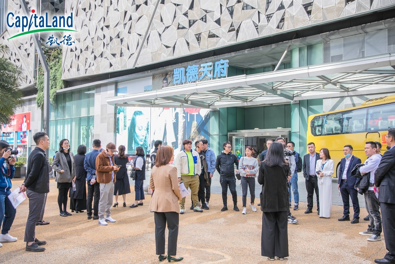 细细探究了凯德·天府的全业态商业空间后,大部队马不停蹄地奔赴下一站:成都来福士广场——凯德华西区首座来福士项目。商场总经理领队,从凯德商业旗舰品牌来福士的内核、乐享其城的品牌精神、史蒂芬·霍尔的三峡设计理念娓娓道来。商场租赁负责人逐层向大家介绍商场内各业态品牌。