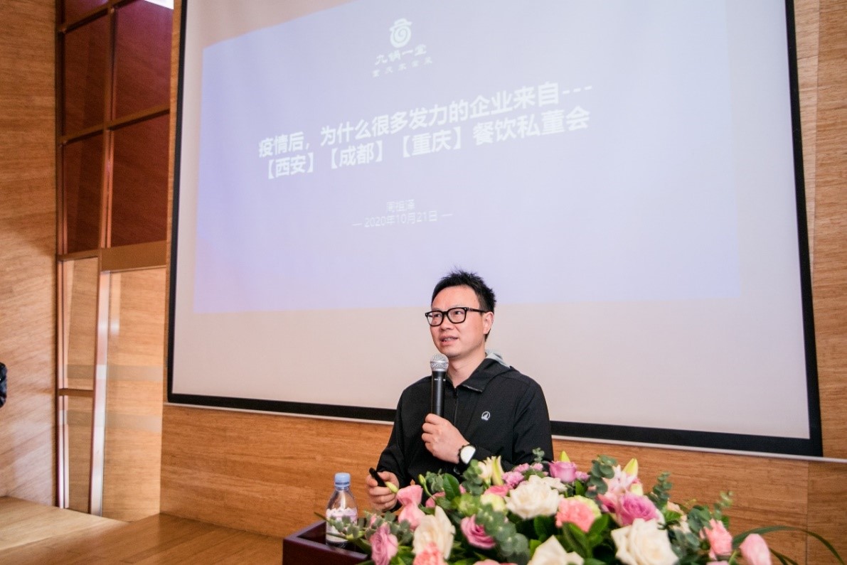 四位行业大咖联合分享餐饮干货。重庆“九锅一堂”董事长周祖泽以“资源拥抱平台”为主题,就2020年疫情后的餐饮界破局重生,与在座嘉宾进行对谈,也提到经过疫情洗礼后,真正的商业时代来临是合作双方的相互成就,你我与共,共创双赢。