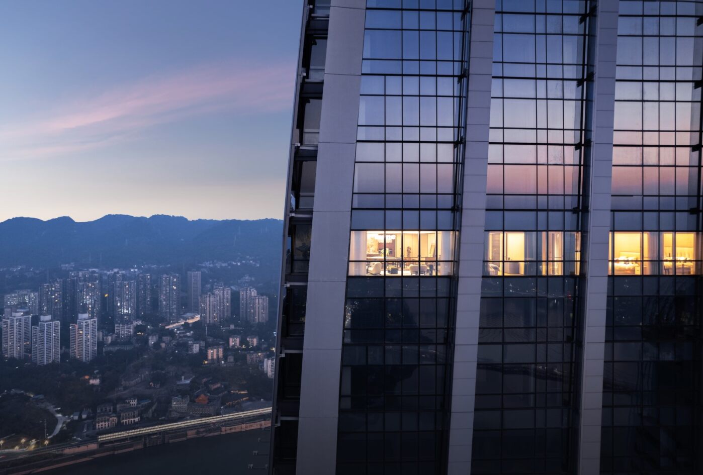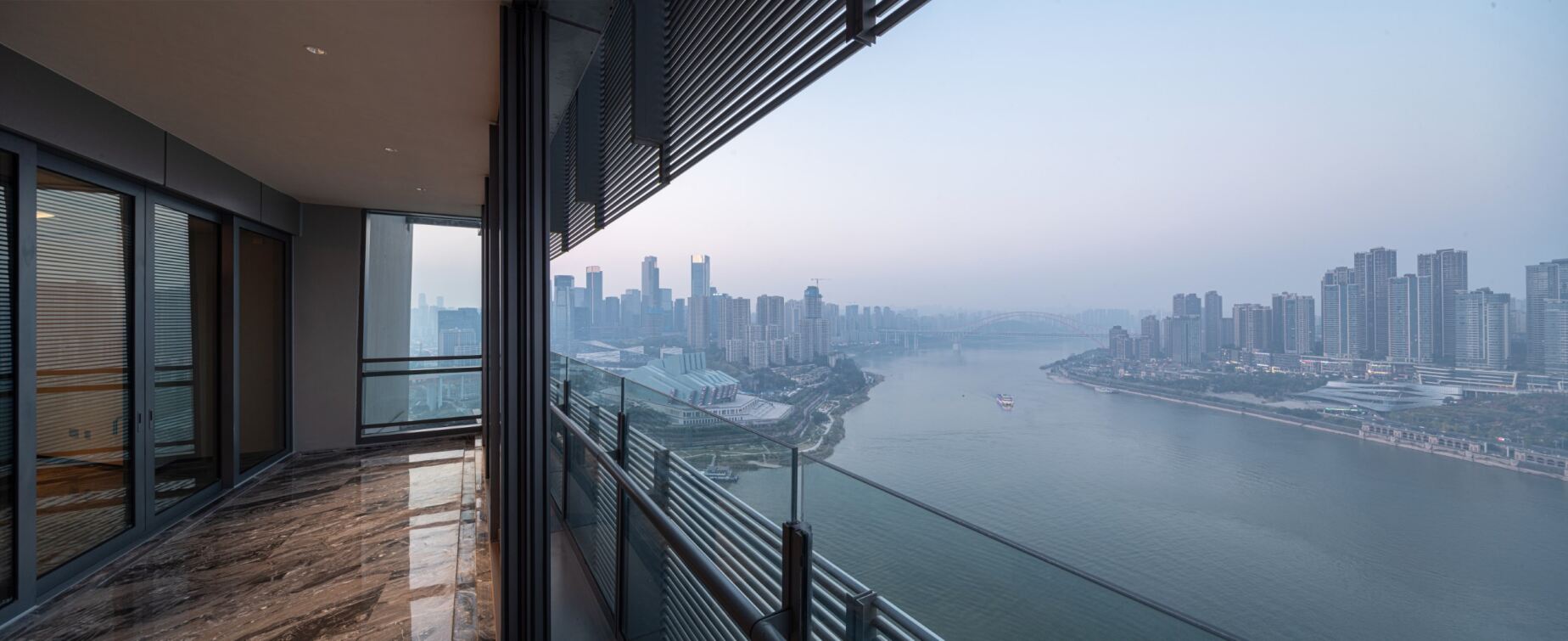 重庆来福士共有5栋住宅塔楼,70年产权纯住宅,面长江而生,驭嘉陵江而立,并以两江禀赋命名,分别为:嘉陵·壹,嘉陵·贰,扬子·壹,扬子·贰和朝天阁,共计约1400户精装大平层。