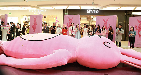 3月12日,贯穿整个3月的成都来福士广场“时尚艺术潮流季”拉开了帷幕。一只不走正义活泼路线的巨型粉红兔威廉,用贱贱的痞相疯狂了整个成都来福士广场。这只长达十米堪称史上最高的毛绒卡通装置William,由成都来福士广场携手“风尚成都”联手打造,其亮相为2016年成都的春天献上了一份充满乐趣的大礼。现场顾客不仅与兔子欢乐相伴,还在成都首位时尚摄影师刘吉吉的个 展中漫游光影;不仅超近距离地观看了威廉女郎Fashion Show,而且还偶遇充满惊喜的时尚艺术快闪;此外还有复活节全城抓兔以及抓拍威廉大赛,乐趣满满,惊喜不断。