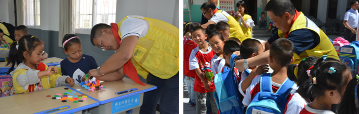 9月1日,“凯德•我的第一个书包”公益活动在暑 假后的第一开学日带着近50名志愿者一路飞奔,经过两 个半小时的路程,承载着满满的祝福,来到了陕西省商洛 市洛南县麻坪镇孤山凯德希望小学,为该校的32名入学 新生们送上人生中的第一个书包。在一片欢声笑语中,孩 子们拿到了属于自己的书本与文具,幸福洋溢在他们可爱 的小脸上。当天下午志愿者们还为孩子们准备了“小小建筑师”的课程和嘉年华时光,孩子们在创意中散发着快乐。