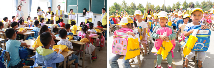 另一位一年级新生李欣悦小朋友告诉志愿者:“非常 喜欢凯德送的书包,我长大了也要回来送书包。”凯德送 出的书包对小朋友而言,是份礼物与祝福。但欣悦接收到 的不仅是惊喜、感动,还有回馈。这或许是书包送出去后, 对凯德,对所有人的另一份惊喜。