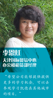 偶然的机会,李恩虹(如下简称“李”)进入凯德。在凯德工作2年多后,她真正体会到从点到面的全面工作;配合政府对于楼宇的工作,与各个代理方之间的合作,与公司其他部门相关的协作,这些都让她受益匪浅。