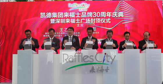 2016年5月25日,深圳市南山中心区综合体地标深圳来福士广场喜封金顶,标志着来福士品牌30周年庆典的巨幕正式拉开。“凯德集团来福士品牌30周年庆典暨深圳来福士广场封顶仪式”隆重举行,新加坡- 广东合作理事会新方联合主席、新加坡教育部代部长(高等教育及技能)兼国防部高级政务部长王乙康、深圳市副市长陈彪、新加坡驻广州总领事蔡簦合、凯德集团总裁兼首席执行官林明彦、凯德集团中国区首席执行官罗臻毓、深圳市恒裕实业( 集团) 有限公司董事局主席龚俊龙,以及合作伙伴、国内外知名品牌代表等200余名嘉宾,共同见证这座全新地标的封顶。深圳来福士项目,作为深圳市首个由外商注资的综合体项目、华南区首座来福士和南山区首个大型综合体,连续五年被政府评为深圳市重大项目,其背后是一座城市的期望。