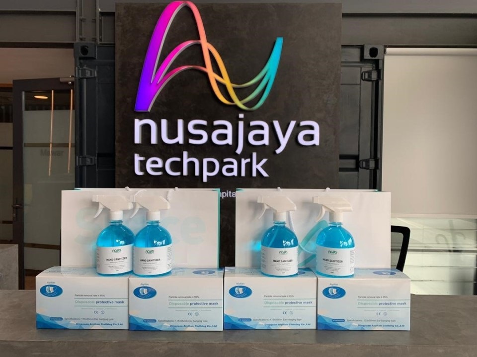 ヌサジャヤ・テックパークは、政府発表の重要な案内についてテナント企業各社へ最新情報を届けるほか、条件付き活動制限令実施中に職場に戻ってくる職員のための準備及び職場安全性をサポートするため、マスク及び手指消毒液を各企業に配布しました。また、ホットラインも開設し、必要としている企業にオペレーション支援を行っています。