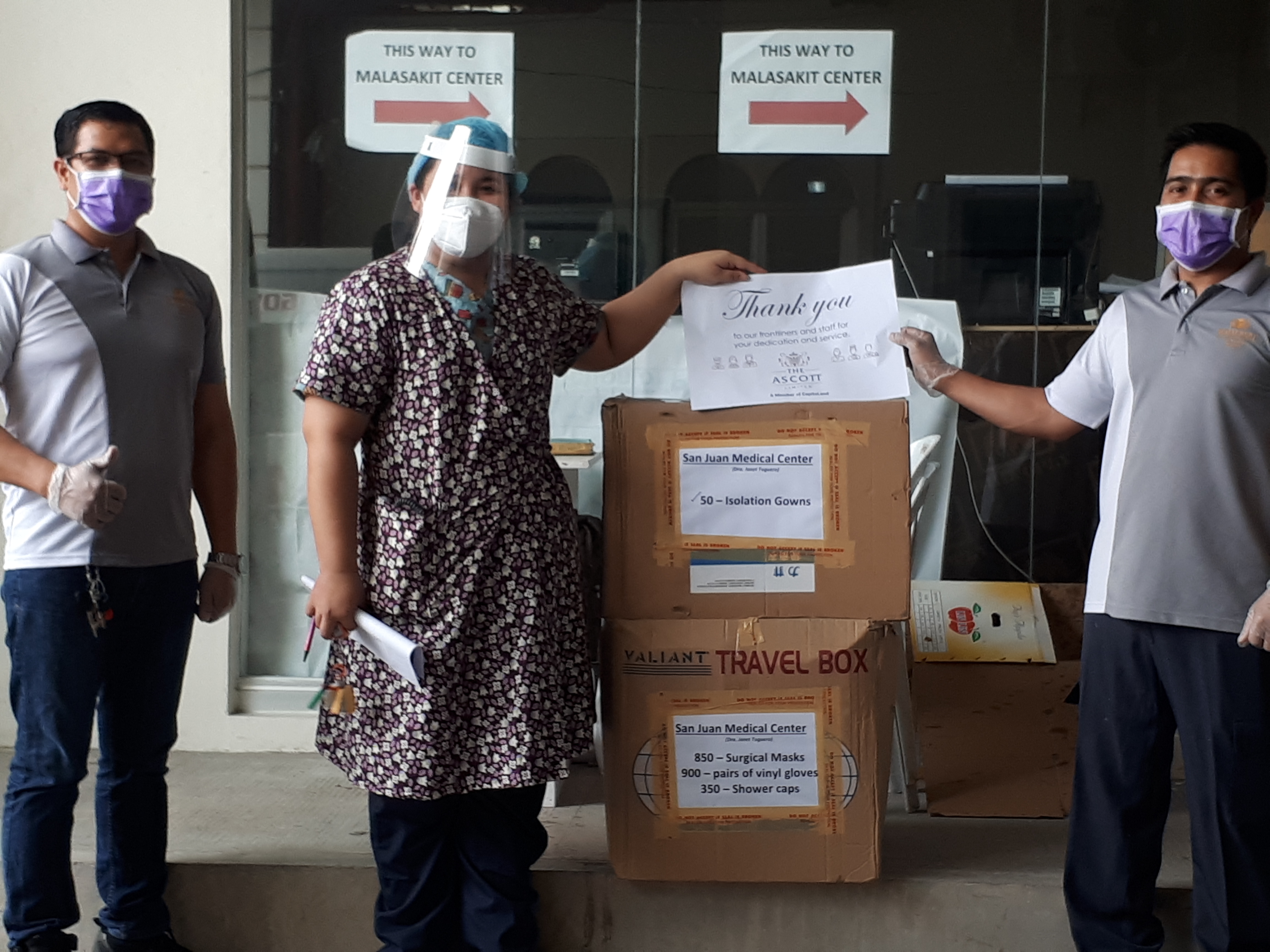 In the Philippines, to support healthcare workers, Ascott donated over S$7,000 worth of medical supplies comprising 3,950 surgical masks, 4,000 pairs of gloves, 211 sets of personal protective suits and 1,500 shower caps to six medical facilities - San Juan Medical Center, Premier Medical Center, Ospital ng Paranaque, Las Pinas Doctors Hospital, Carmona Hospital & Medical Center, and Lipa Medix Medical Center on 13 April 2020.