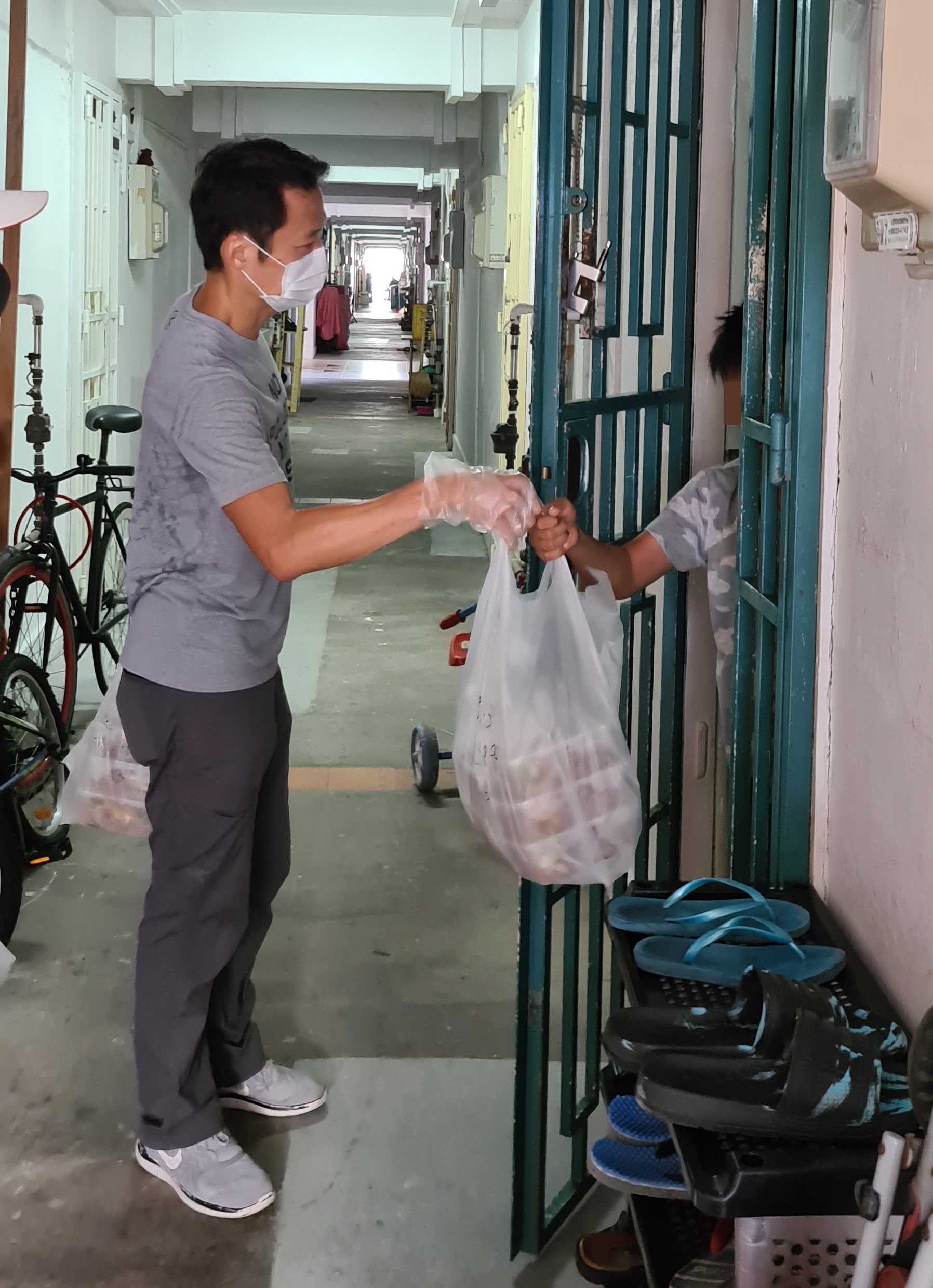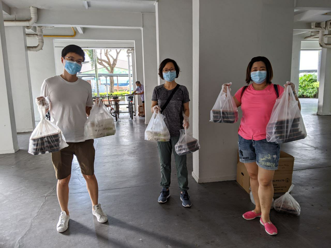Staff volunteers delivering meals to the vulnerable communities during the circuit breaker