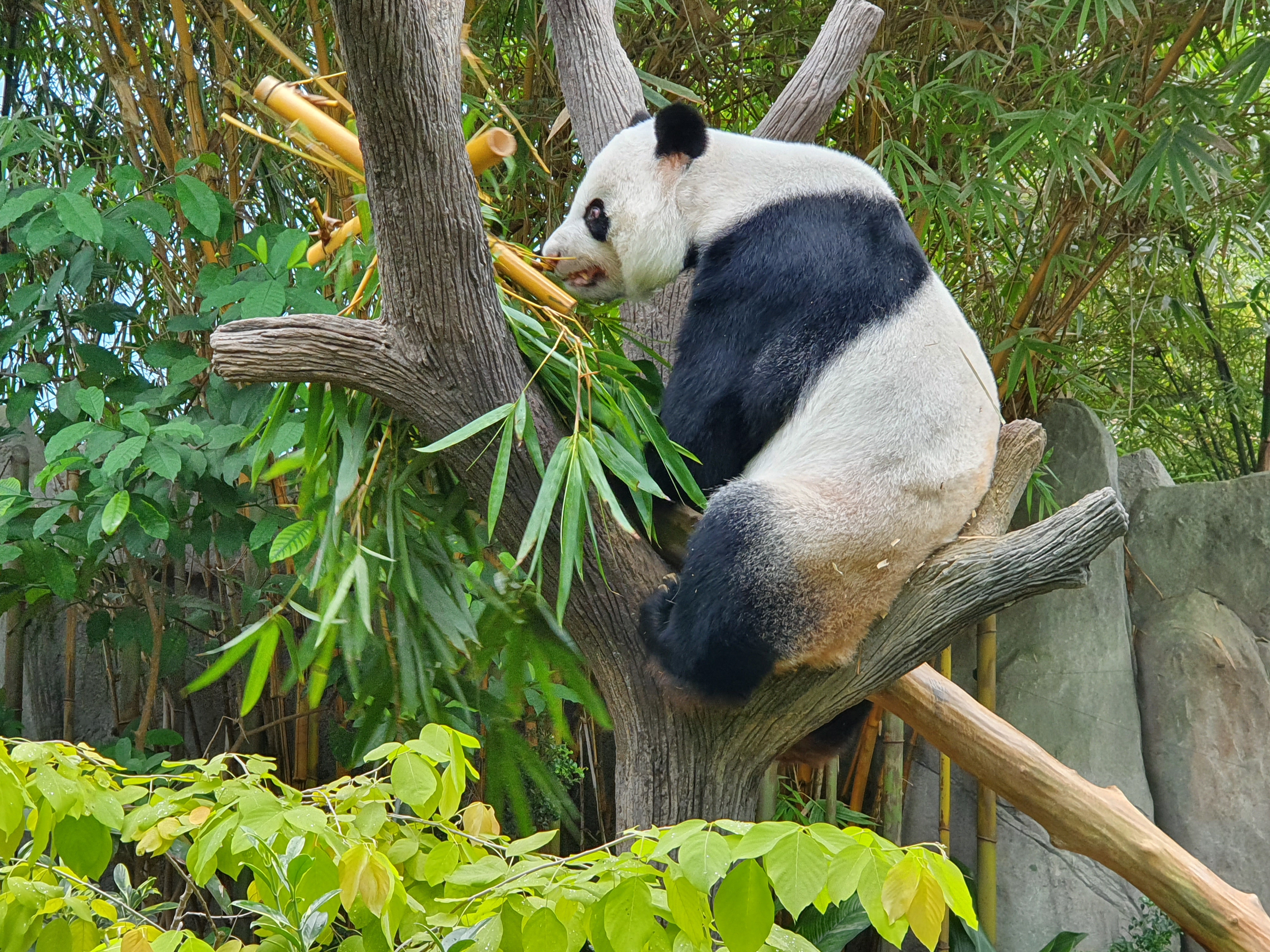 The habitat of Kai Kai and Jia Jia comprises a climate-controlled enclosure of about 1,500m2. An energy-efficient water-chilled air-conditioned system is used to set the entire habitat at a temperature between 18 and 22 degree Celsius and humidity levels are controlled at 50 to 60 per cent year-round. The habitat is naturally landscaped with a lush bamboo forest, shallow streams, trees and boulders for the animals to explore and play.