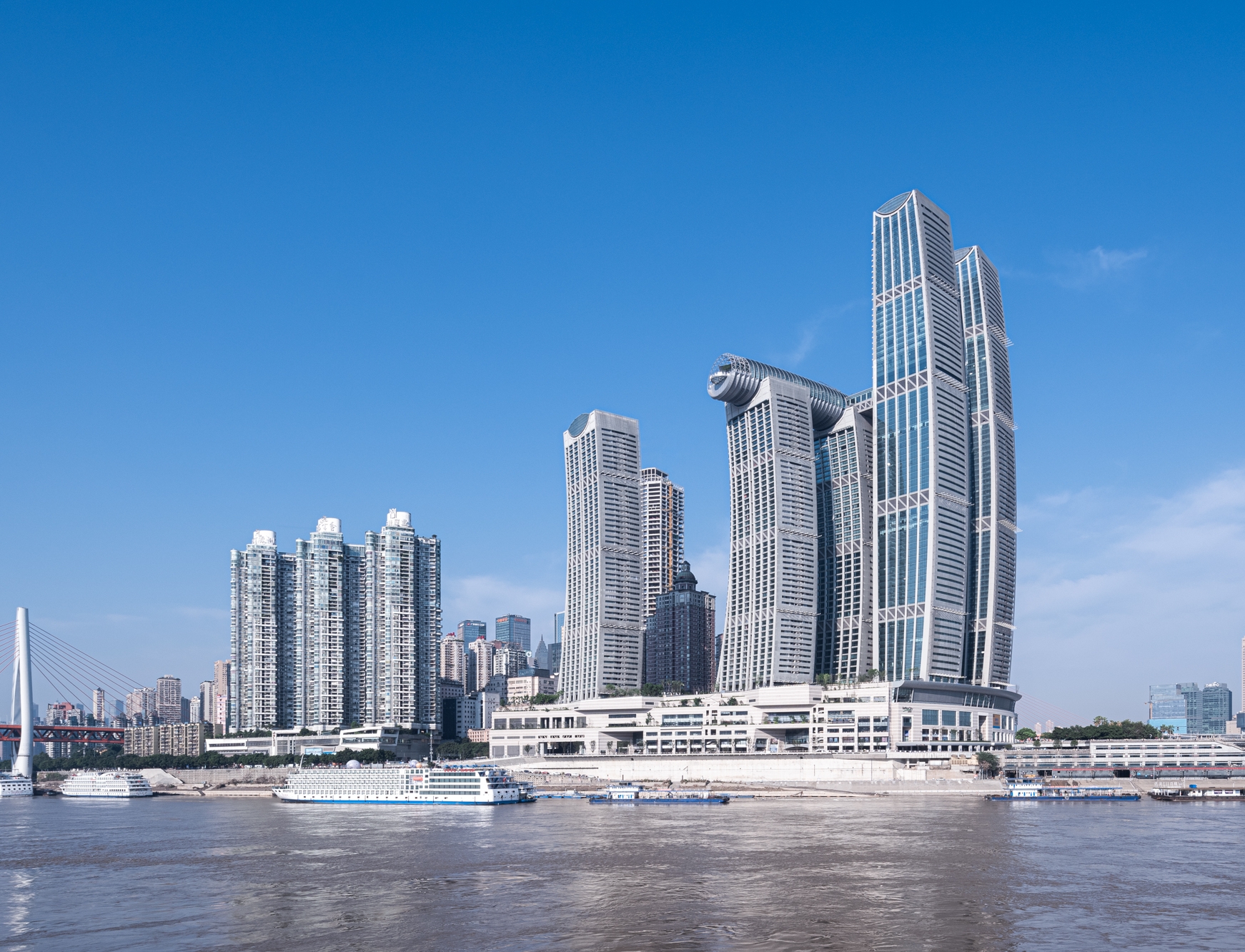 Raffles City Chongqing's award-winning design takes the form of powerful sail surging forward on the historic Chaotianmen site where Yangtze and Jialing rivers meet.