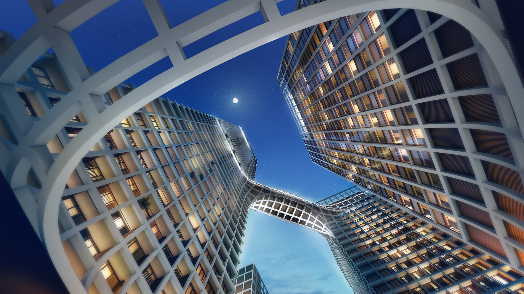 The striking façade of CanningHill Piers is artistically draped in an iconic geometric lattice that unifies this mixed-use development with a sculptural form. Akin to the lifting of a veil, the continuous drape is raised at recreational levels, at various heights, to reveal the myriad of social spaces, amenities, green sky terraces and unmatched views for residents to enjoy.