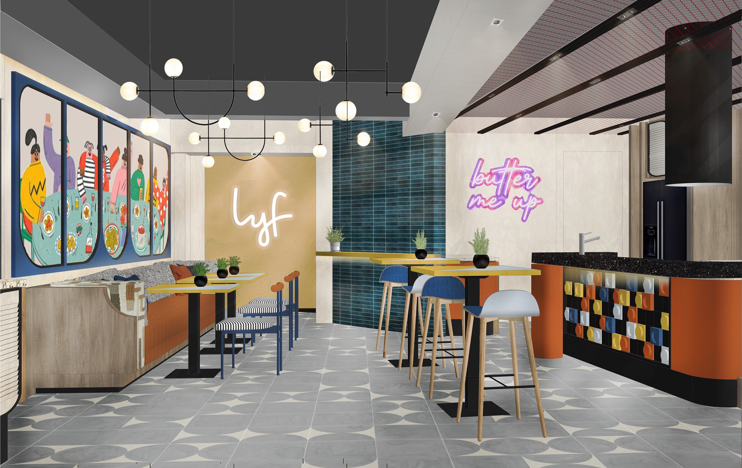 Artist's impression of the 'Bond' social kitchen at lyf Bugis Singapore