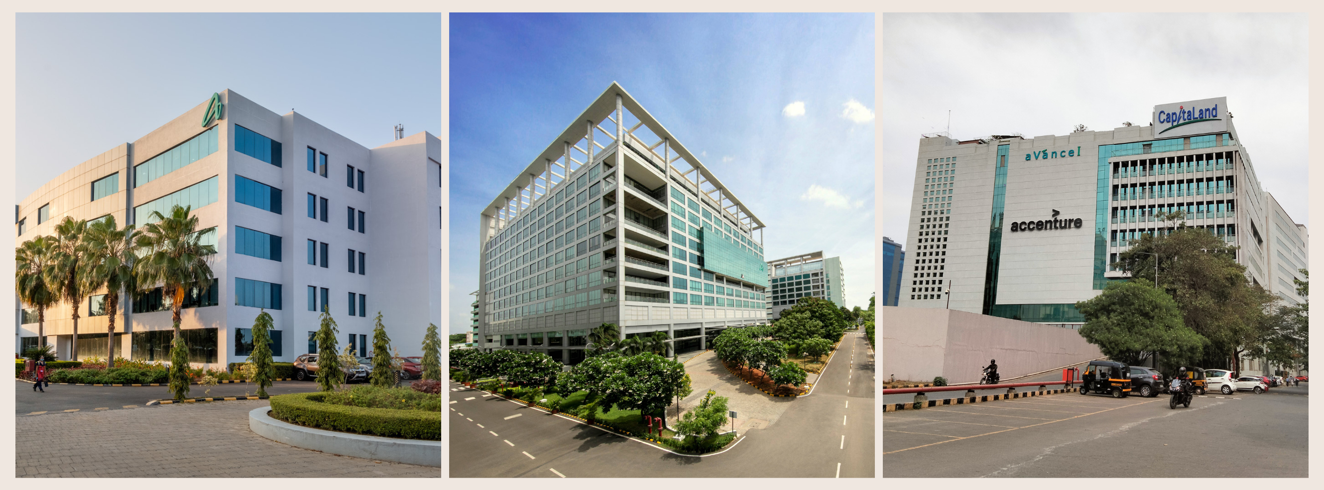 (L-R) CyberVale, Chennai, International Tech Park Chennai and aVance Pune are to obtain an Excellence in Design for Greater Efficiencies (EDGE) certification by 2026. They will also contribute towards the reduction of absolute greenhouse gas emissions by 40.5% from the baseline year of 2019 during the loan term.