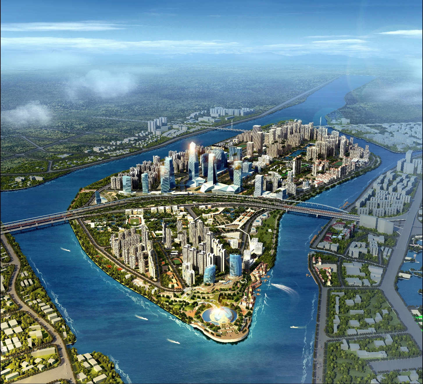 Datansha is located in the western part of downtown Guangzhou, in close proximity to the Liwan district. With a total area of 3.55 sqkm, it is the largest island along the Pearl River section. Of a total 6.04 mil sqm planned GFA, 0.72 mil sqm is for resettlement, 1.56 mil sqm for village collective commercial development and 1.97 mil sqm for saleable components.