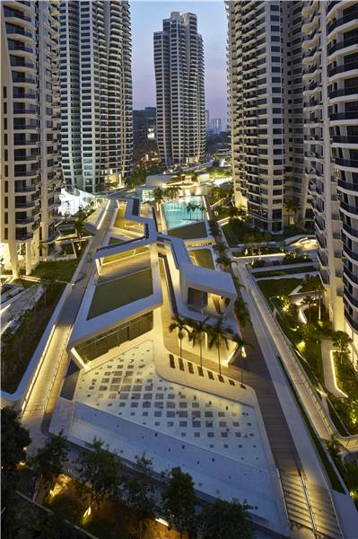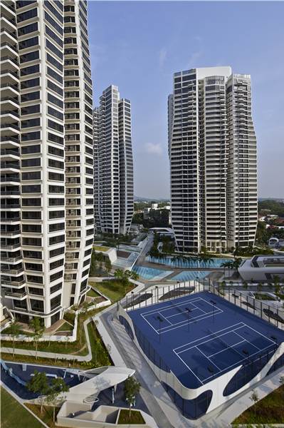 It provides a full suite of recreational facilities, including two 50-metre lap pools, dipping pools, Jacuzzis, water gym, children’s wet play pool, eco-pond, reflecting pools, three party houses, barbeque areas, tennis courts, two clubhouses with reading rooms, games rooms, karaoke rooms, golf simulator rooms and screening rooms, spa pavilions, gymnasium, outdoor event spaces, retail areas and restaurants.