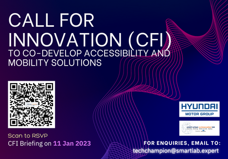We will conduct a briefing of the Call for Innovation on 11 January 2023. Please RSVP via bit.ly/3Y0llvE by 10 January 2023 if you would like to attend the briefing.