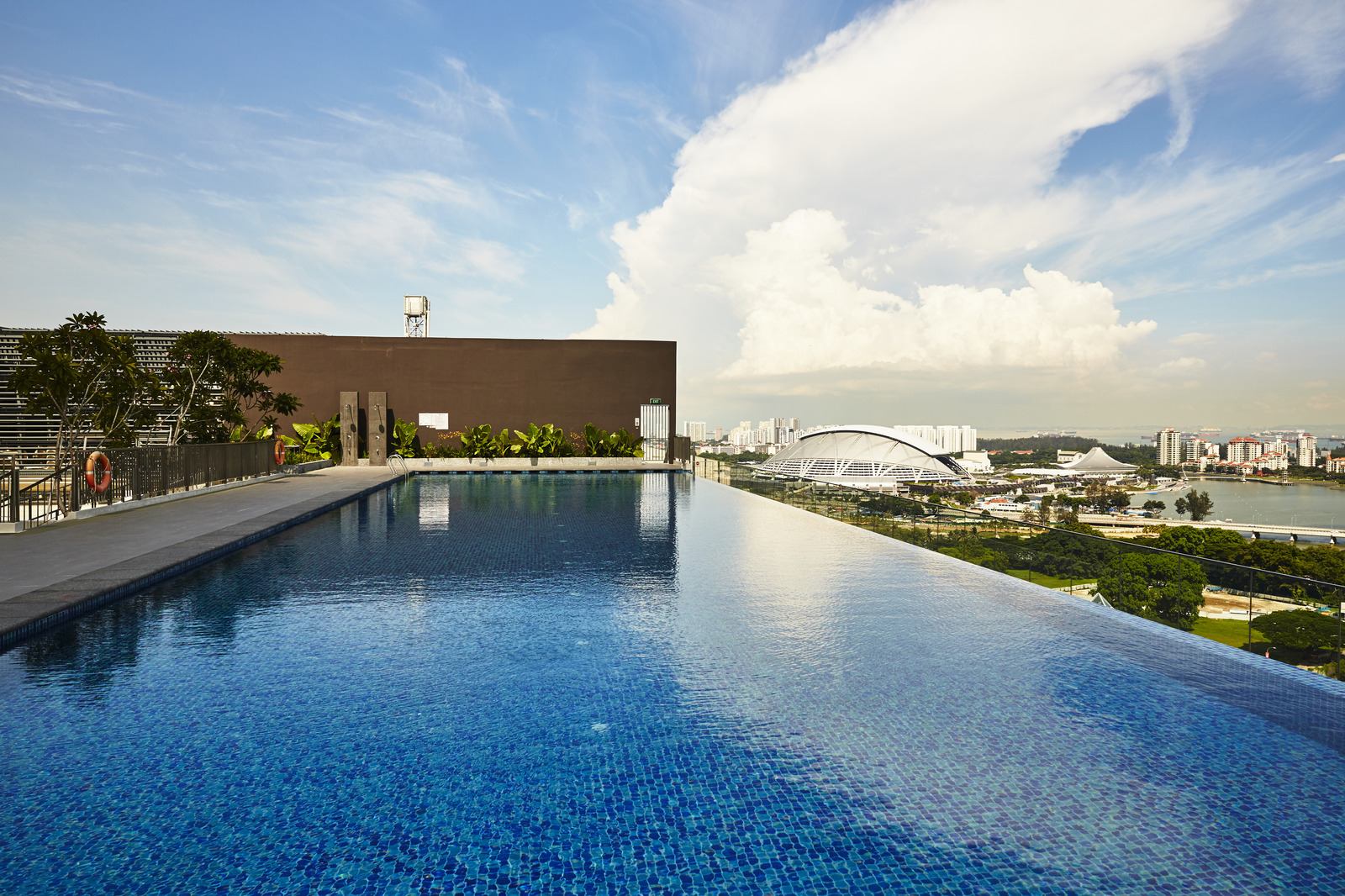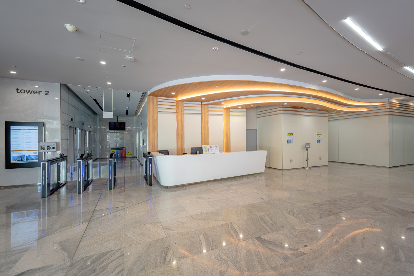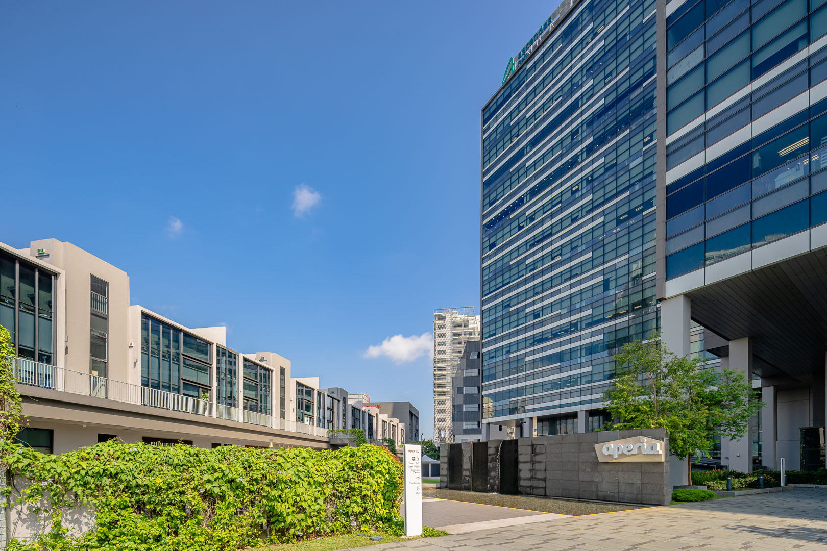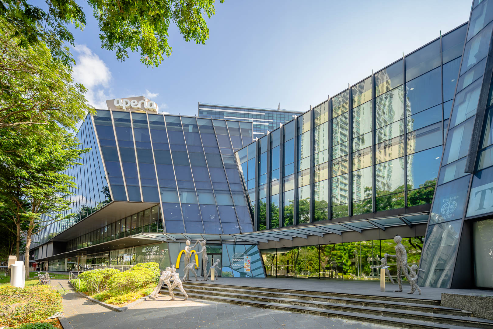 Centrally located at the culturally diverse and bustling hub of Kallang, Aperia's eye-catching facade strikes a professional image, attracting international fintech companies such as Sonova and other local businesses. The office towers boast a rooftop swimming pool, childcare services and a business centre, while an adjoining three-storey retail mall houses attractive brands and eateries, including a Michelin-starred restaurant and a supermarket. With separate service lifts for the retail and office buildings, tall slab-to-slab ceiling heights of up to 5 m, and high floor loading capacity, the integrated development is ideal for software production, IT, call centres, and e-commerce activities.