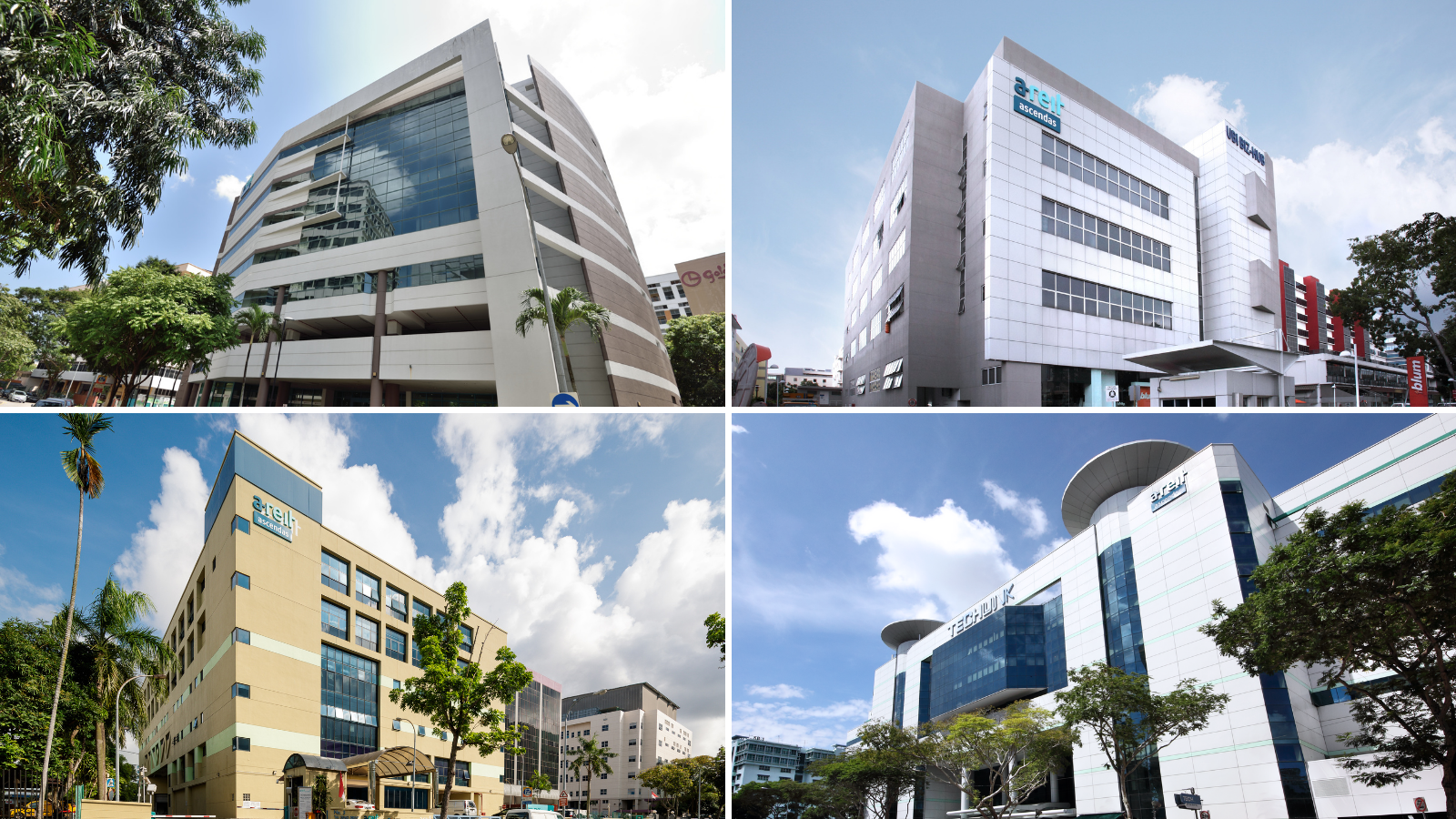 An overview of CapitaLand’s properties that will benefit from the area’s revitalisation (clockwise from top left): KA Place, Ubi Biz-Hub, Techlink and 3 Tai Seng. Photos: CapitaLand