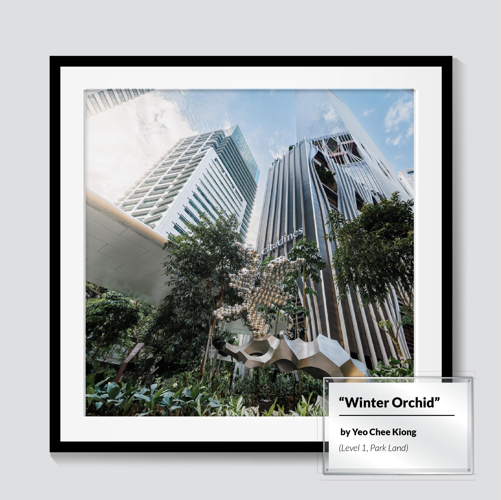Serving as a connector from the outside into CapitaSpring, Park Land is where jungle meets concrete jungle, which makes it the perfect place for ‘Winter Orchid’ to find its rightful place. Known for his uniquely playful and unexpected juxtapositions, ‘Winter Orchid’, the tropical orchid blooms in the bitter cold, an unexpected juxtaposition that has come to define Yeo's work.