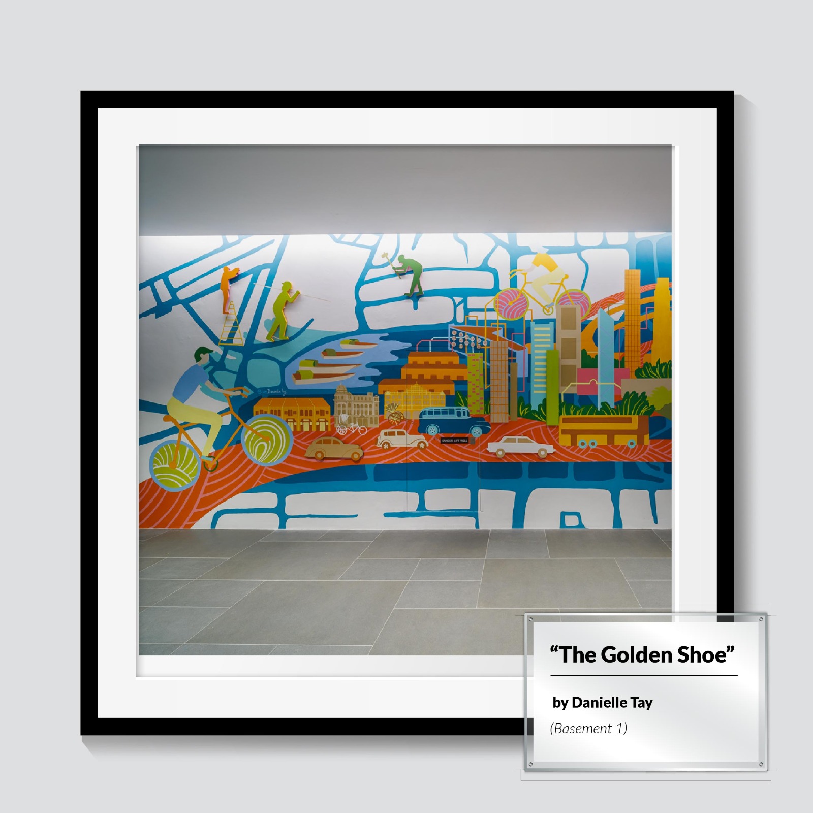 For those who fondly remember the old Golden Shoe Carpark, walking through B1 will feel like a trip down memory lane. ‘The Golden Shoe’ by local artist Danielle Tay. Inspired by the old Golden Shoe Carpark that once stood upon this exact ground, Danielle’s mural pays homage to the past by capturing the evolution of Raffles Place, and also reflects the changes the area has gone through over the years.