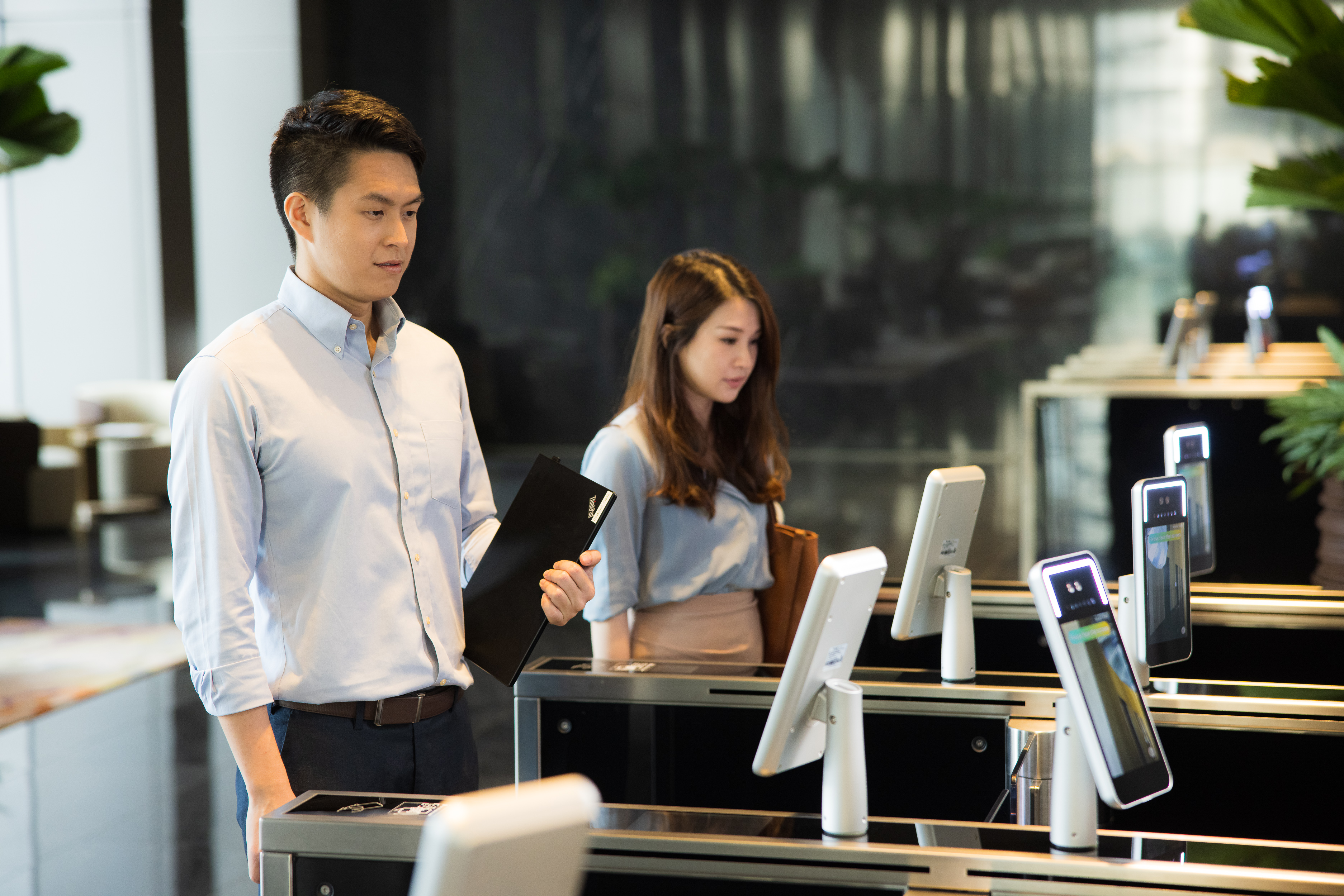 Facial recognition allows you to access your building lobby without lifting a finger!