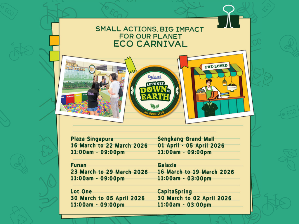 Join us at CapitaLand’s sustainability festival, Let’s Get Down to Earth 2026, happening from 16 March to 5 April across selected CapitaLand workspace and retail properties!