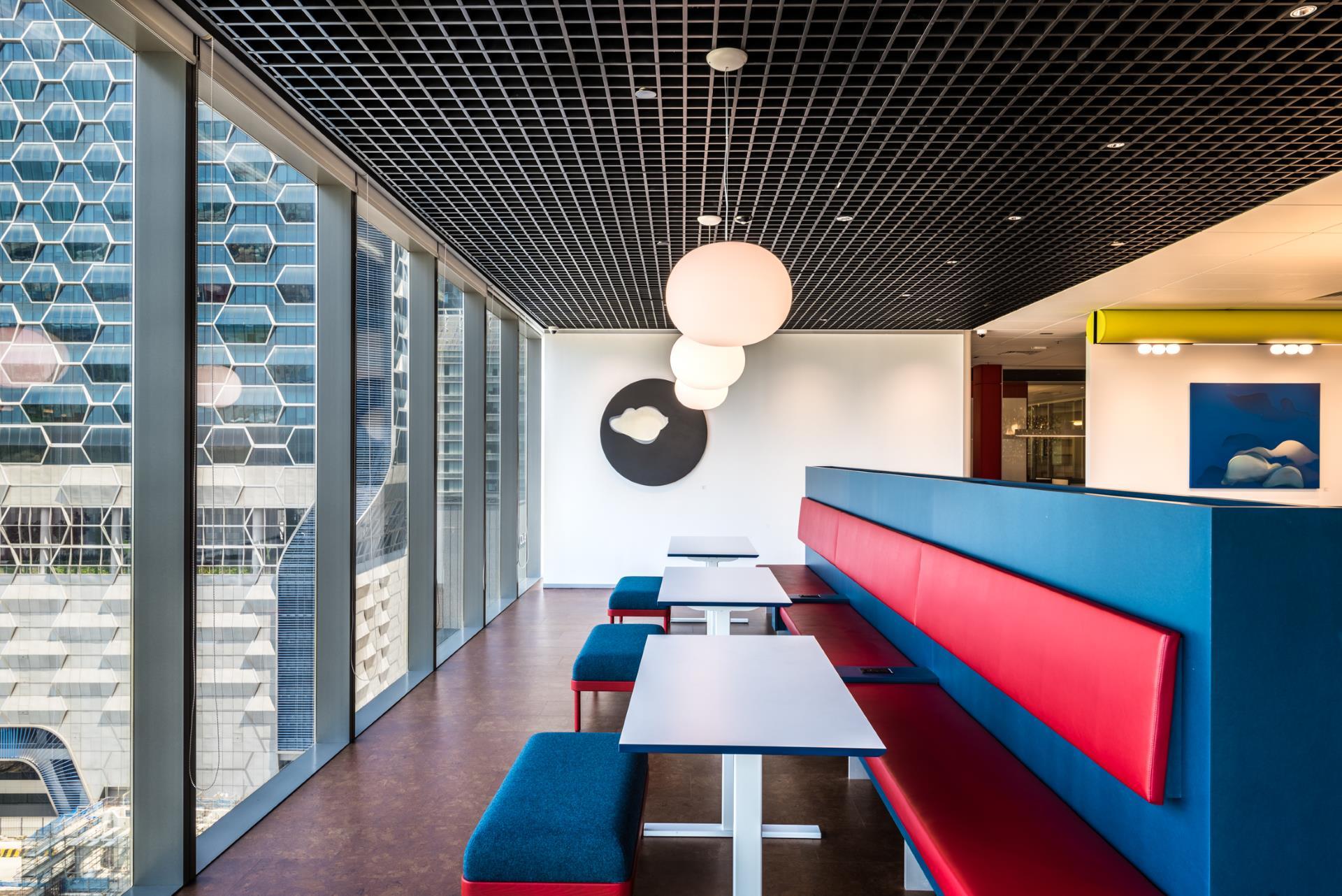 If working in the CBD and rubbing shoulders with the crowd on the daily commute isn’t quite your thing, then Bridge+ Ascent at Singapore Science Park is a good option to consider, where the interior is vibrant and welcoming, with pops of colour all around the space.