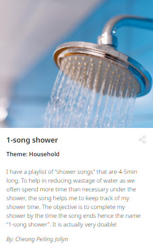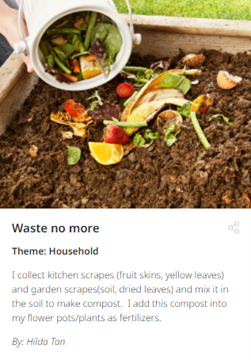Among the submissions, some interesting ideas that stood out include a DIY multi-purpose cleaning spray with orange peel vinegar; instead of throwing out the water from the dehumidifier machine, to recycle it to clean the floor/toilet; to even freezing fruits to make wine desserts.