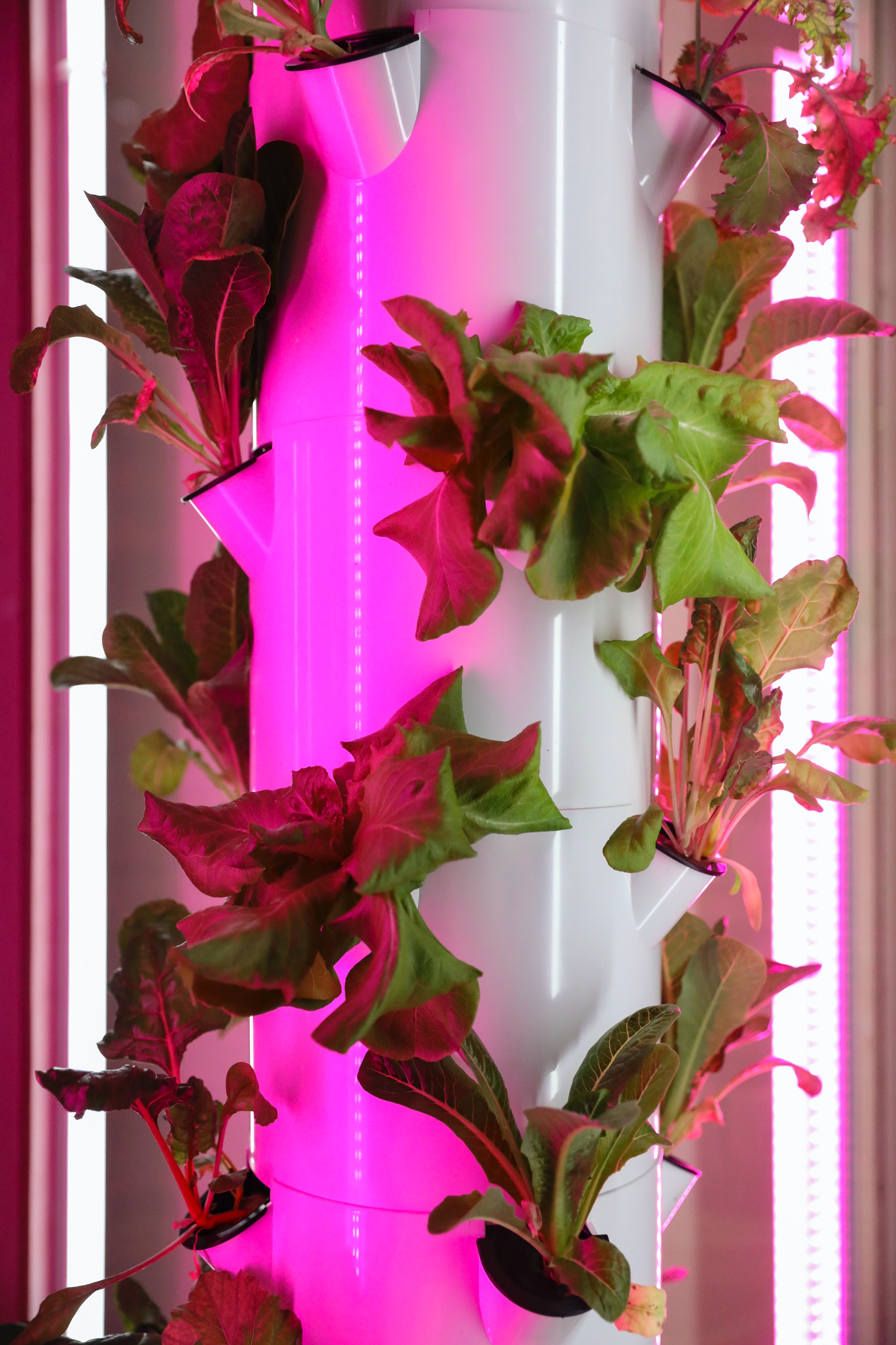 With vertical farming, crops are grown on top of each other, instead of side by side as with traditional farming, which saves a lot of space.