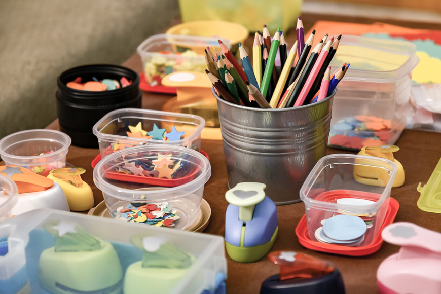 Whether or not you have kids, plastic takeaway containers make great storage options for most things, especially craft materials as they’re transparent and can be washed easily.