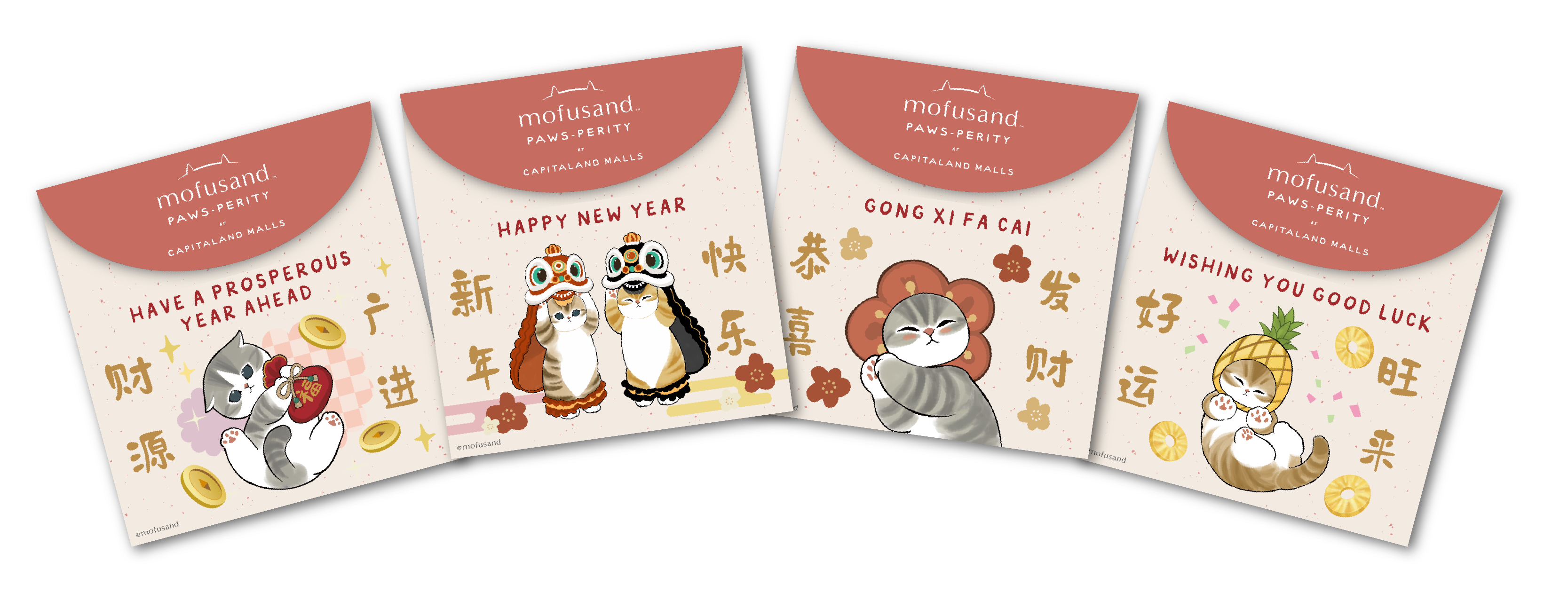 For an extra touch of prosperity to share, delight your loved ones by gifting exclusive Mofusand-themed digital red packets via the CapitaStar app!