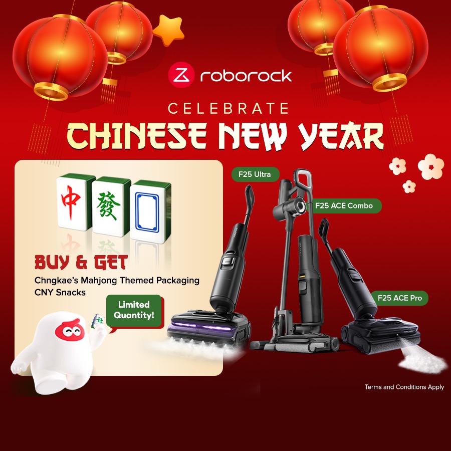 Customers who purchase selected wet and dry models  (F25 Ace Pro, F25 Ultra and F25 Ace Combo) are eligible to win a Chng Kae Chinese New Year themed Snack Gift Set, while stocks last. Visit Roborock #03-24.