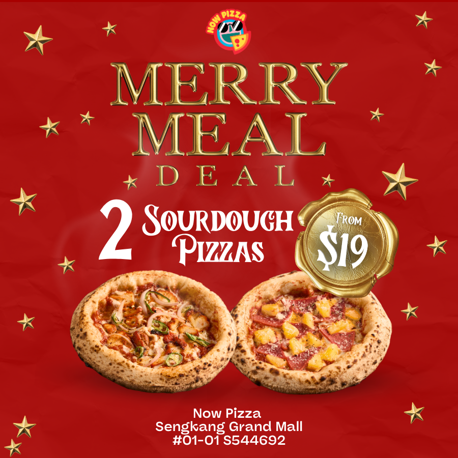 Tis’ the season to double up 🎄🍕 Get 2 Sourdough Pizzas from just $19 with our Merry Meal Deal! Available from 24 Nov – 30 Dec 2025.