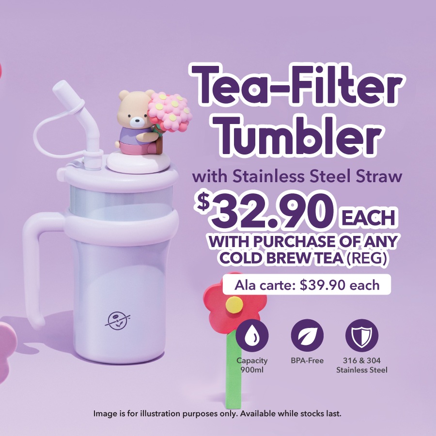 Big on capacity, cute on vibes, and perfect for your daily tea runs, #CoffeeBeanSG’s newest Tea Filter Tumbler with Stainless Steel Straw (900 ml) is here to make every sip a little more fun! With a removable tea-filter and the cutest silicone bear topper keeping watch over your drink, staying hydrated has never looked this adorable.