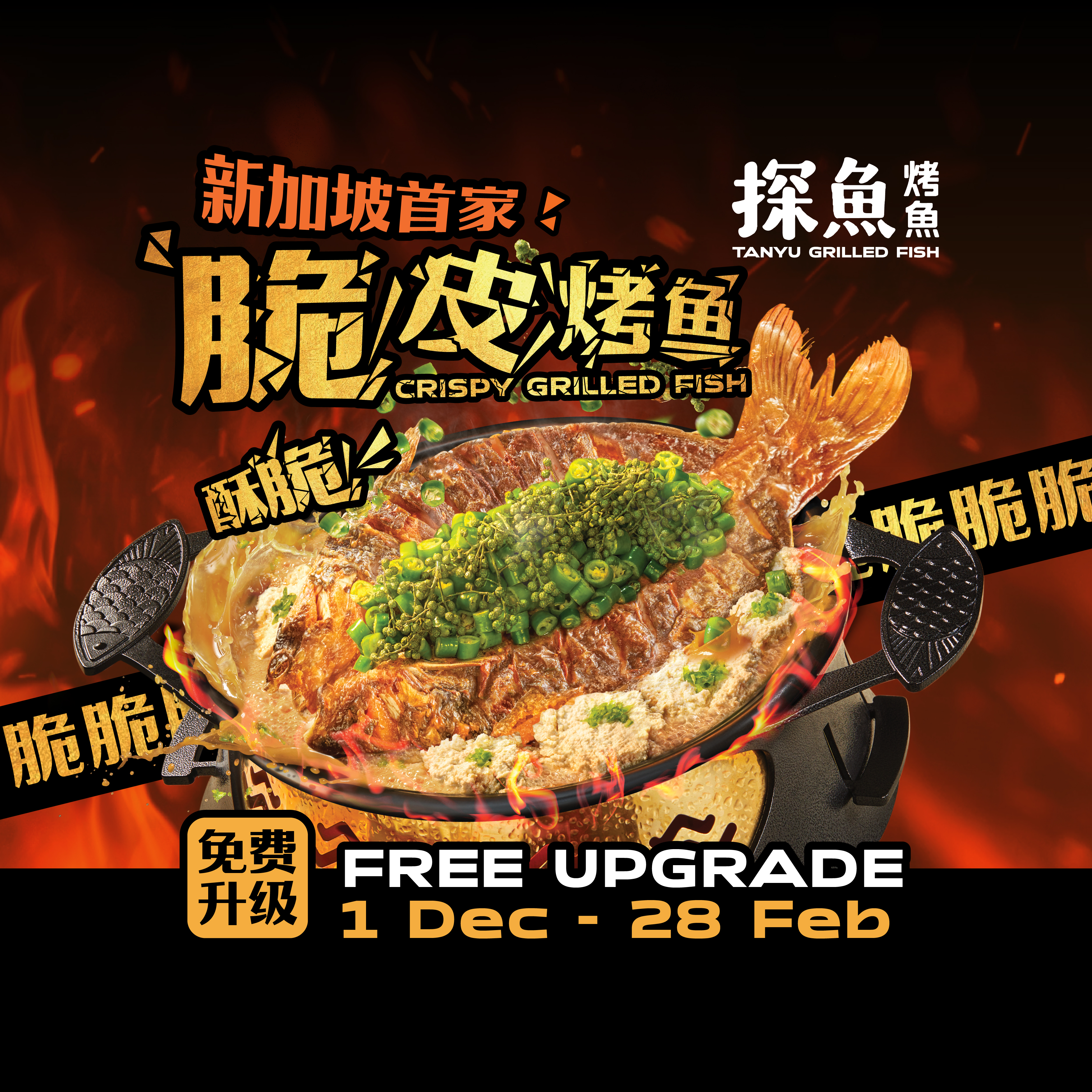 • Customers can enjoy a free upgrade (U.P $3.90) of any Grilled Limbo/Qingjiang fish to the new Crispy Grilled Fish only from 1 December 2024 - 28 February 2025.