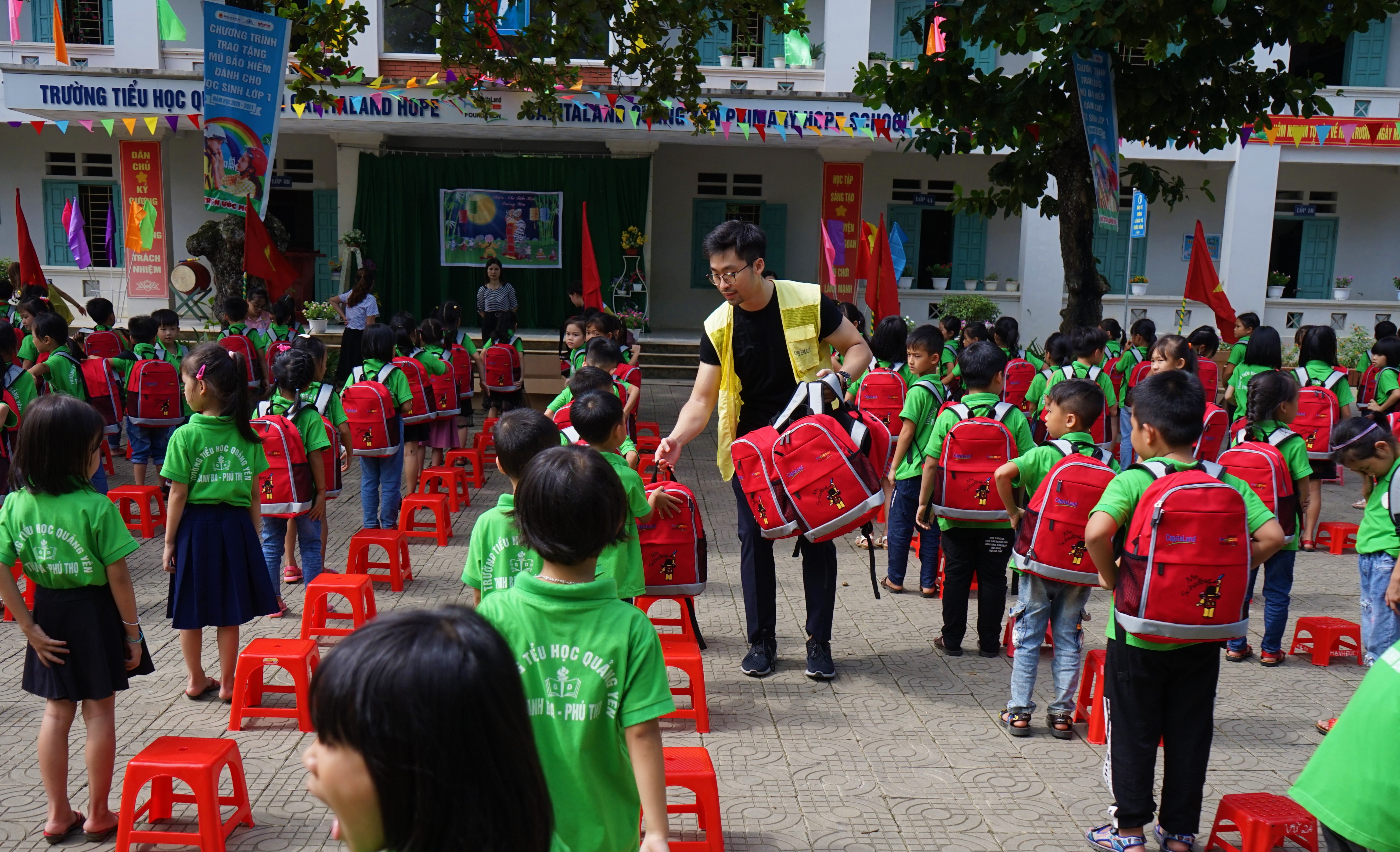 Đây là năm thứ năm CapitaLand tổ chức “Ngày Thiện nguyện CapitaLand” tại các trường học mà công ty đã hỗ trợ xây dựng và cải tạo tại Việt Nam. Hơn 40 tình nguyện viên là nhân viên tập đoàn đã tham gia chương trình để trao cặp sách cho học sinh thuộc các điểm trường mầm non Lệ Xá (Hưng Yên), trường mẫu giáo Tân Tây (Long An), trường tiểu học Quảng Yên (Phú Thọ) và trường tiểu học Thạnh Phước (Long An) từ ngày 28-9 đến 1-10. Bên cạnh đó, học sinh còn nhận bánh trung thu và lồng đèn do CHF tài trợ để vui Tết Trung thu tại trường. Đặc biệt, 173 em thuộc khối lớp 5 tại hai điểm trường tiểu học nhận học bổng hỗ trợ của chương trình nhằm mục đích giúp các em chuẩn bị tốt cho các kỳ học sắp tới.