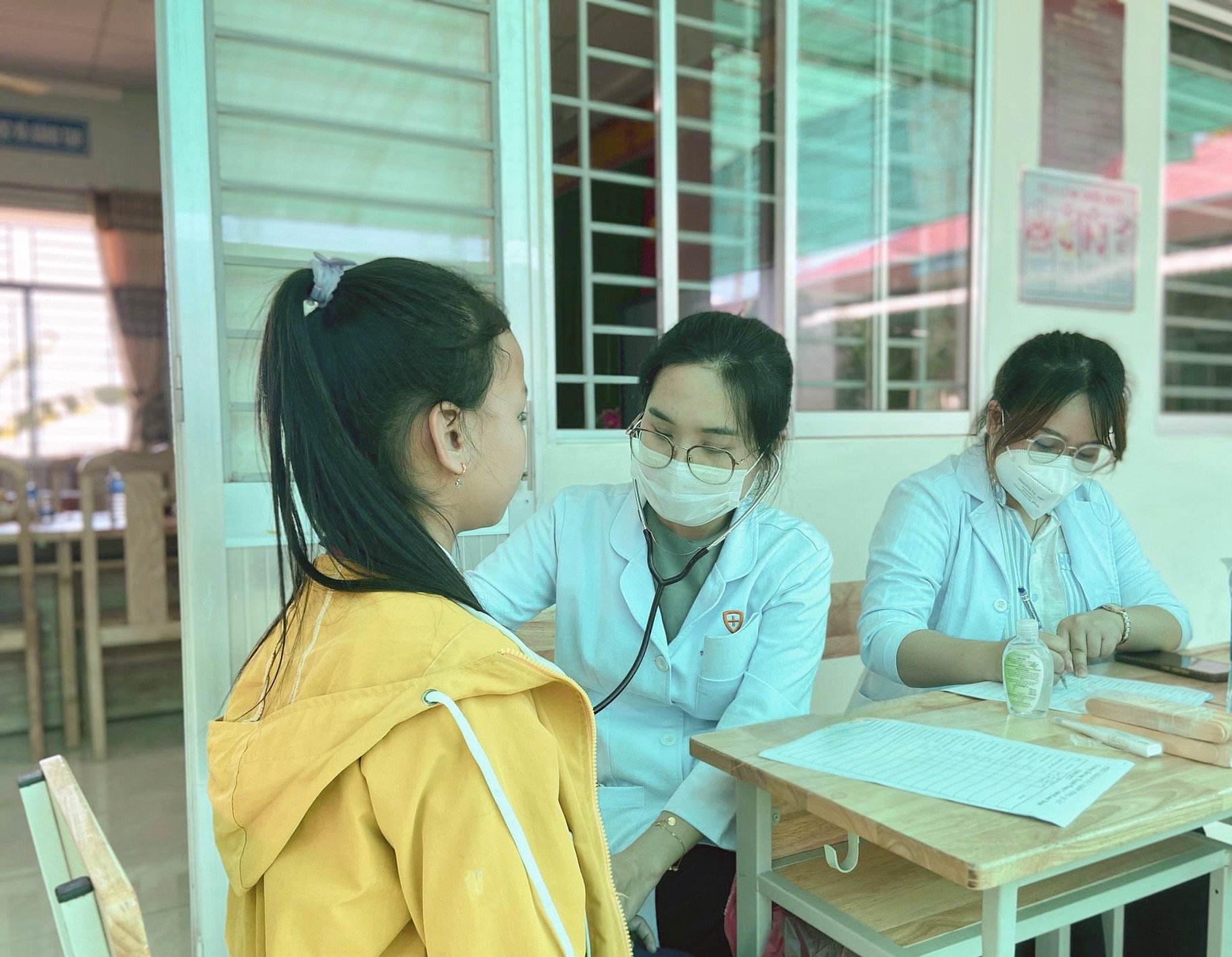 Hoạt động thăm khám sức khỏe vào cuối chương trình dinh dưỡng học đường nhằm theo dõi sức khỏe và sự phát triển của trẻ